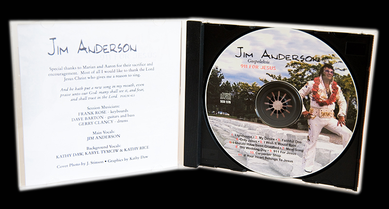 GospelElvis CDs can be purchased by contacting us by email or telephone and they are always in evidence at any concert or event where you find Jim (aka GospelElvis), so if you prefer you can buy one (or two, or one of each) in person.